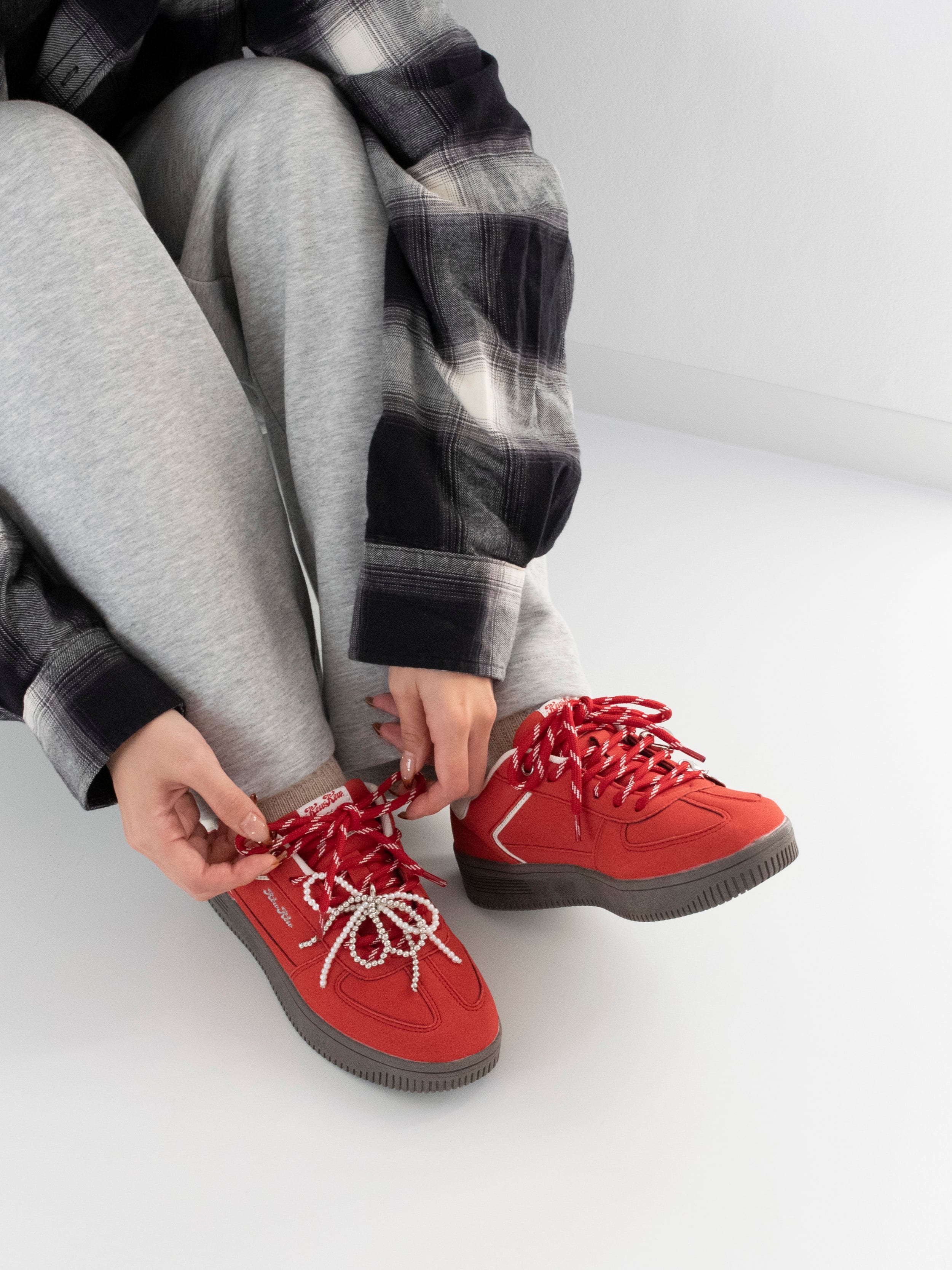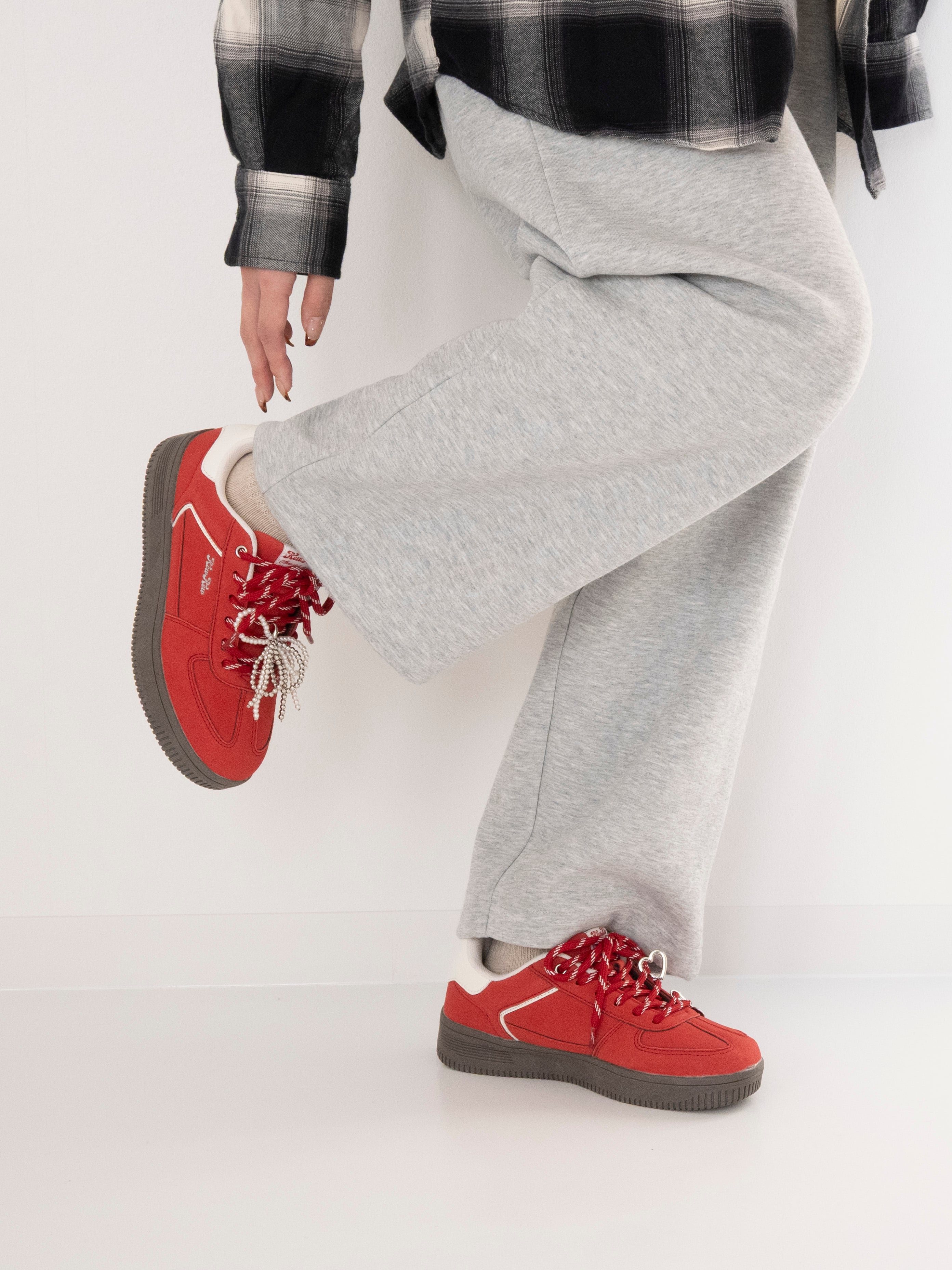 カスタムチャーム付きレトロスニーカー -RED-(Kew-2458)