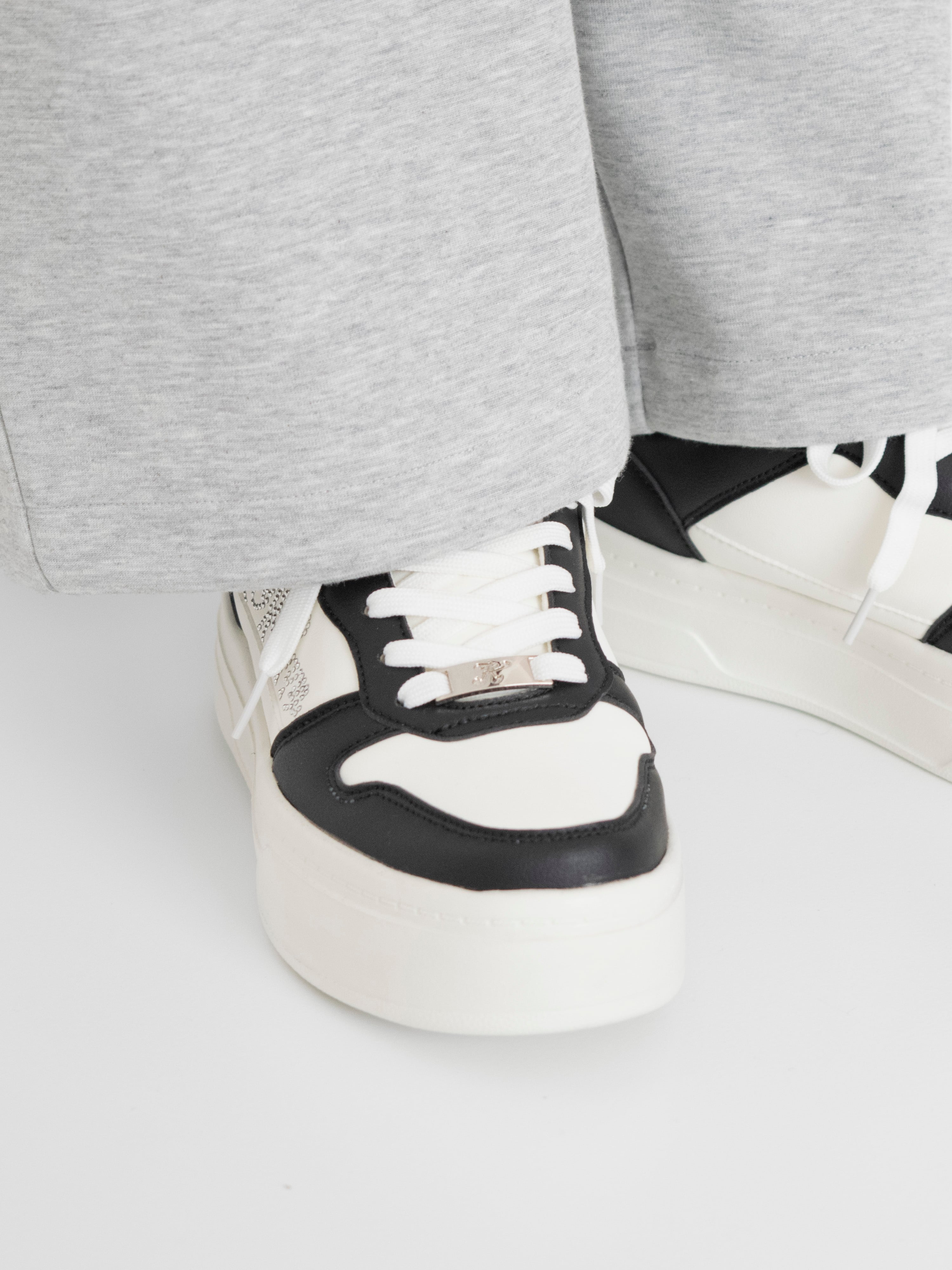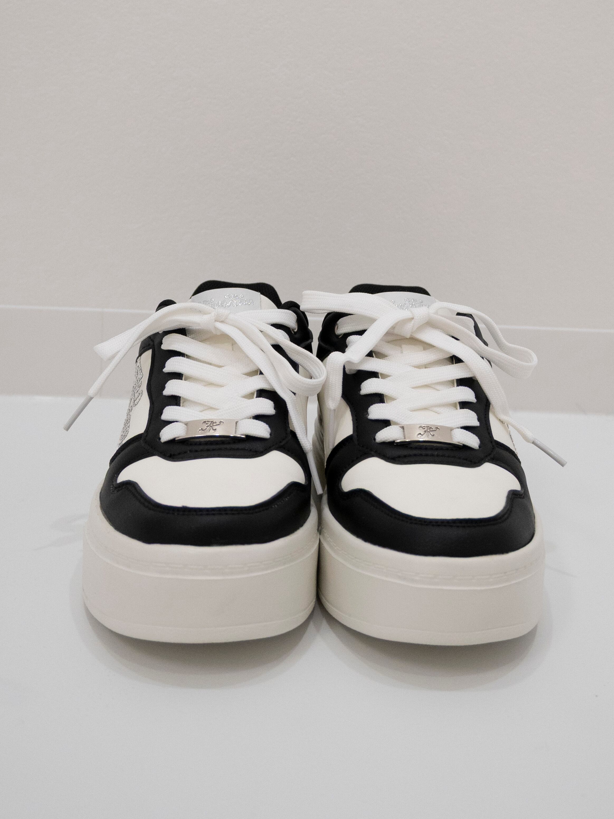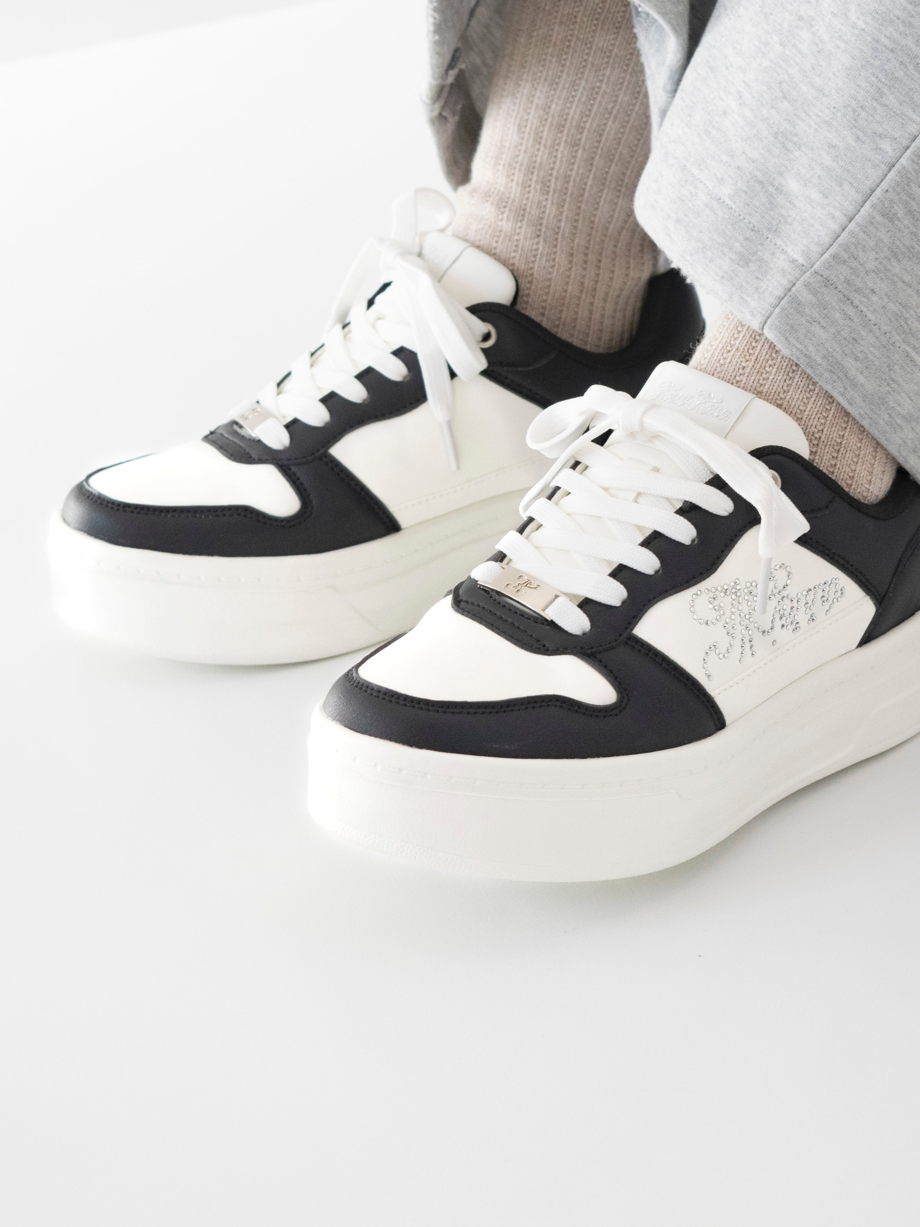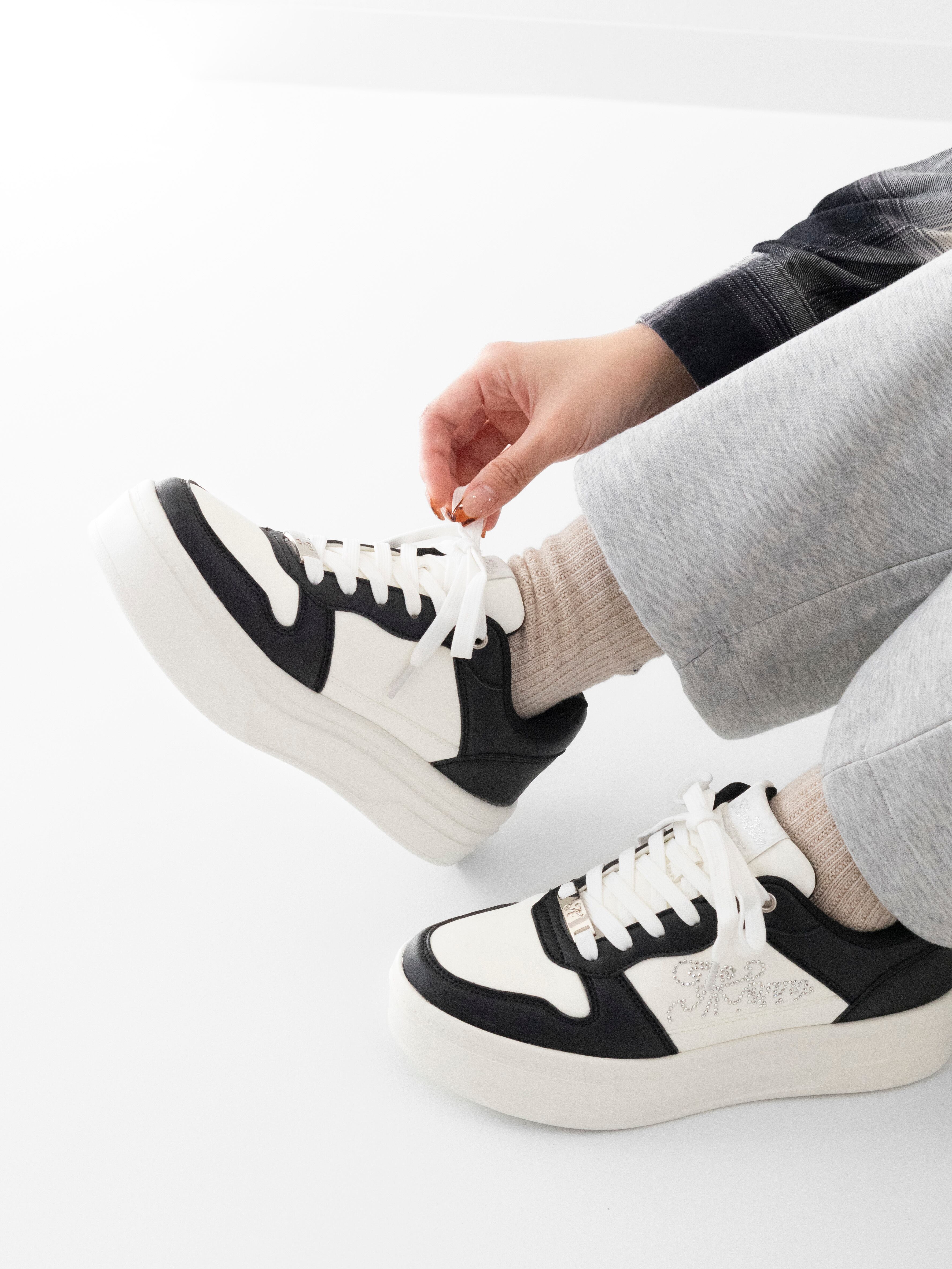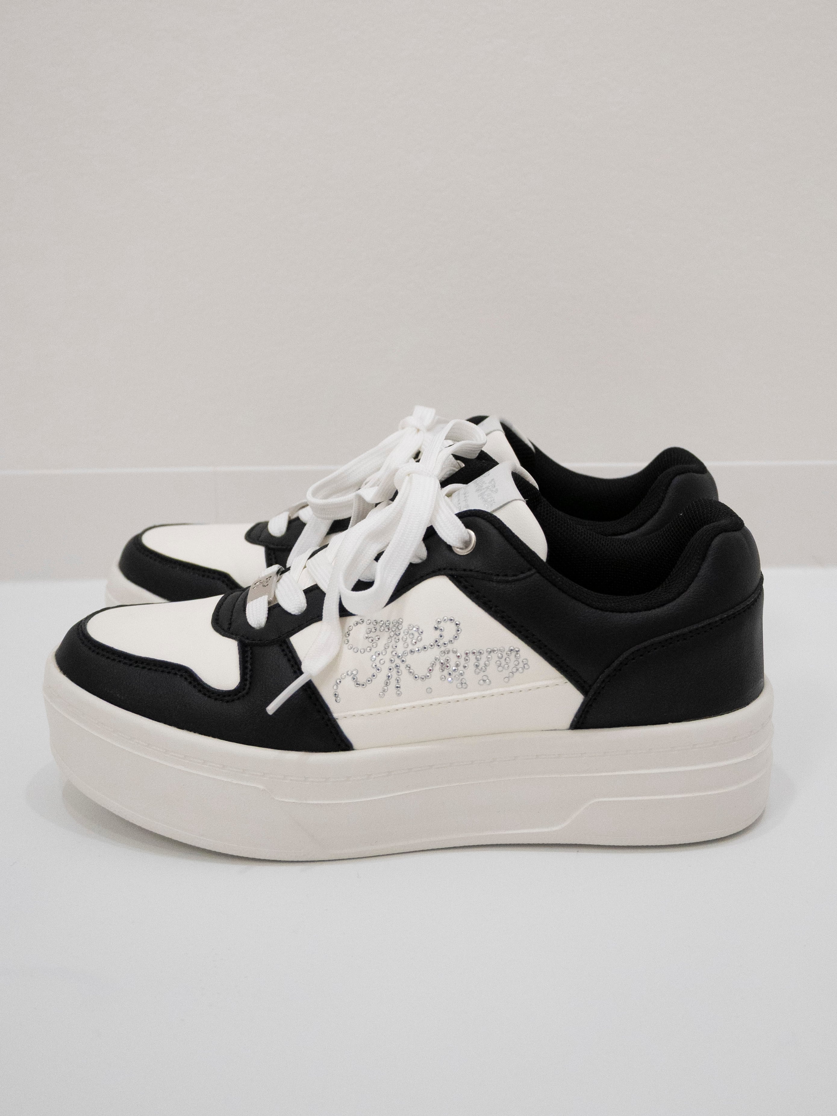 配色ラインストーン厚底スニーカー -WHITE/BLACK-(Kew-2456)